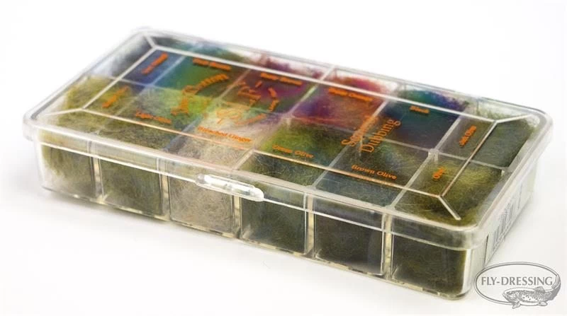 SLF’s uitstekende eekhoorn dubbing in een dispenser. 12 coole kleuren, met een “gierige” uitstraling. Een must voor de nympspeler.