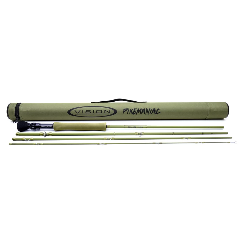 Vision Pikemaniac Flyrod is een vliegenhengel met titanium ringen, 40-ton carbon fiber blank en 130 cm schaal. Complete vliegenhengel voor het vliegvissen op snoek met een aantrekkelijke matgroene kleur, passend bij de doelvissen!